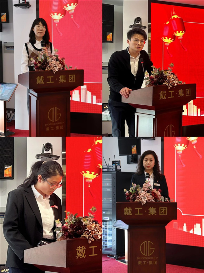 集團副總裁兼總經(jīng)理周麗在會上表示:回顧2023年,對戴工集團來說,是不平凡的一年,歷經(jīng)三年疫情的考驗,集團穩(wěn)步發(fā)展。這一年集團在面臨諸多的挑戰(zhàn),受大環(huán)境影響,經(jīng)濟形勢嚴峻、市場競爭異常激烈的情況下,在集團董事長的領(lǐng)導下以及各級負責人和全體員工的努力下,圍繞著企業(yè)年初制定的戰(zhàn)略目標,秉承“以質(zhì)量求生存,以服務求發(fā)展”的經(jīng)營理念,視困難為挑戰(zhàn),化挑戰(zhàn)為機遇,在企業(yè)管理、品牌建設(shè)、經(jīng)營業(yè)績等方面均收獲了喜人的成績和經(jīng)驗。表示在2024年集團在企業(yè)管理方面、品牌建設(shè)方面以及經(jīng)營業(yè)績方面將投入更大的支持,戴工人要堅定發(fā)展信念,增強憂患意識,在市場大局中找準定位和自身優(yōu)勢,適應市場變化,迎難而上,奮力在高質(zhì)量發(fā)展階段蹚出適合我們自己的新路線,在逆境中爭創(chuàng)佳績。在講話中總經(jīng)理還下達了2024年戴工集團的年度總產(chǎn)值10億目標任務。在2024年,希望戴工人能保持對事業(yè)的熱情和追求卓越的精神,勇于創(chuàng)新,勇于擔當,不斷提升自身的工作技能和職業(yè)素養(yǎng),為公司的發(fā)展貢獻自己的力量。同時,也希望大家能保持團結(jié)和合作的精神,支持公司的戰(zhàn)略部署與組織調(diào)整,共同打造一個更加美好的未來。在新的一年里能夠攜手共進,再創(chuàng)輝煌。最后總經(jīng)理還在會上祝愿戴工的同事們以及業(yè)界合作伙伴們在龍年平安健康、事業(yè)蓬勃、幸福如意。