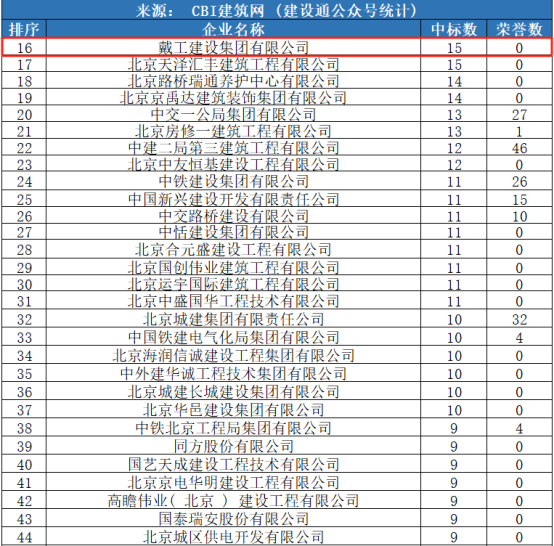近日,CBI建筑網(wǎng)發(fā)布的2024年7月北京建筑施工企業(yè)中標(biāo)數(shù)量排行榜中,戴工建設(shè)集團(tuán)有限公司以卓越的市場(chǎng)表現(xiàn)與項(xiàng)目實(shí)力,強(qiáng)勢(shì)躋身前十六強(qiáng),彰顯了其作為行業(yè)領(lǐng)軍企業(yè)的深厚底蘊(yùn)與強(qiáng)勁發(fā)展勢(shì)頭。
