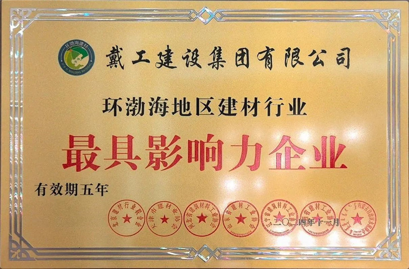在此,我們熱烈祝賀戴工集團(tuán)榮獲2024年度環(huán)渤海地區(qū)建材行業(yè)“最具影響力企業(yè)”稱號,并期待戴工集團(tuán)在未來的發(fā)展中再創(chuàng)佳績,續(xù)寫輝煌篇章!